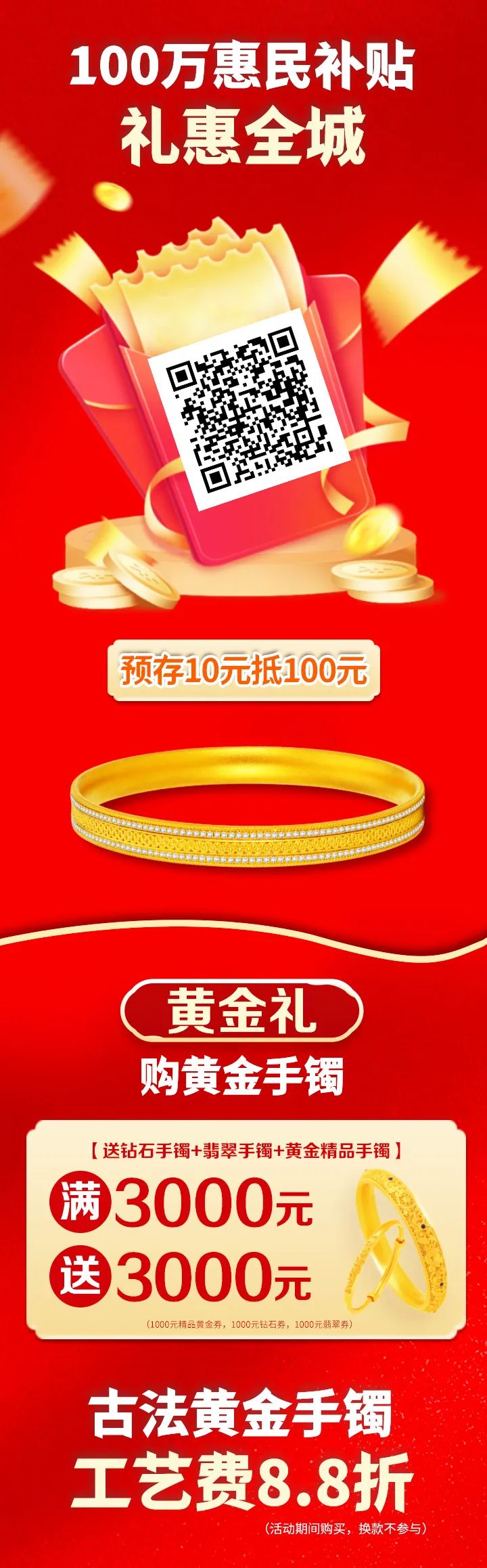 东方福珠宝【国潮黄金手镯节】黄金手镯满3000送3000,全城黄金0元换款,100万惠民补贴免费送!