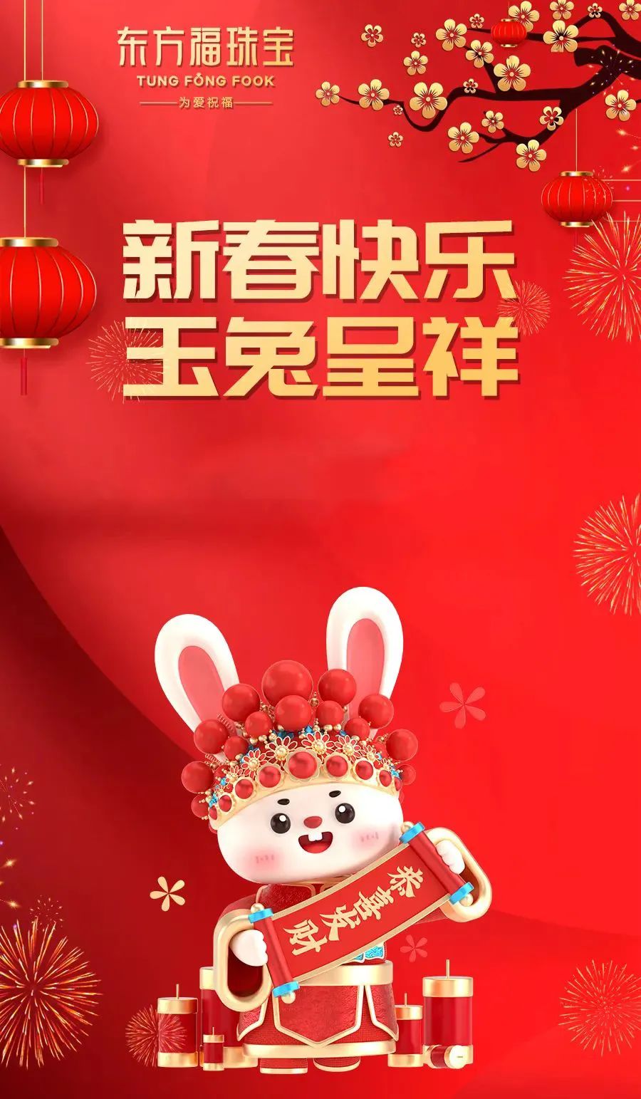 金虎一跃乘风去 玉兔呈祥送福来 癸卯新春到来之际 借开年吉时之首 东方福珠宝 向一直关心和支持的社会各界朋友 致以最诚挚的新年祝福