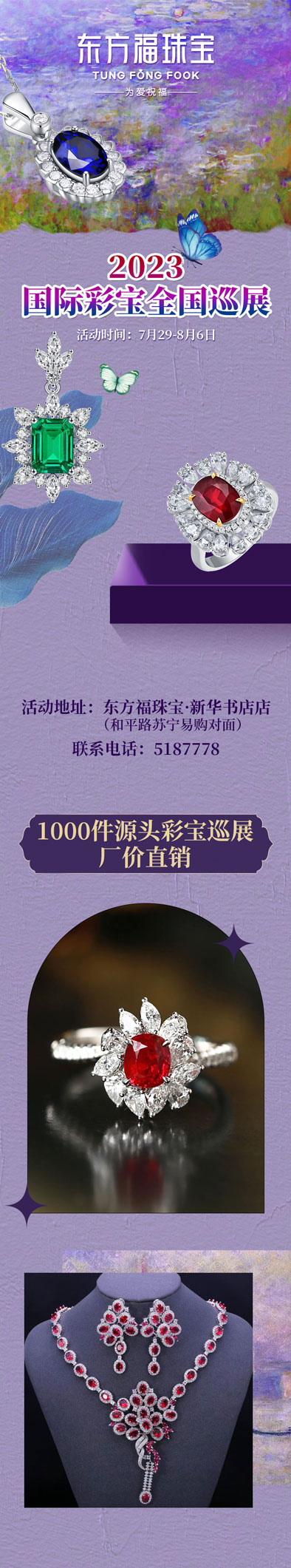 东方福珠宝【2023国际彩宝巡展】1000件彩宝厂价直销!彩宝吊坠低至999!黄金增值换彩宝!